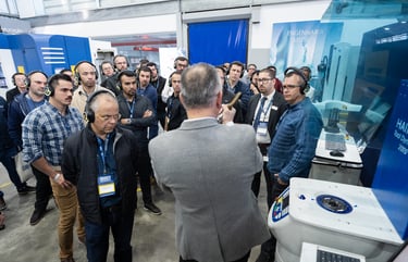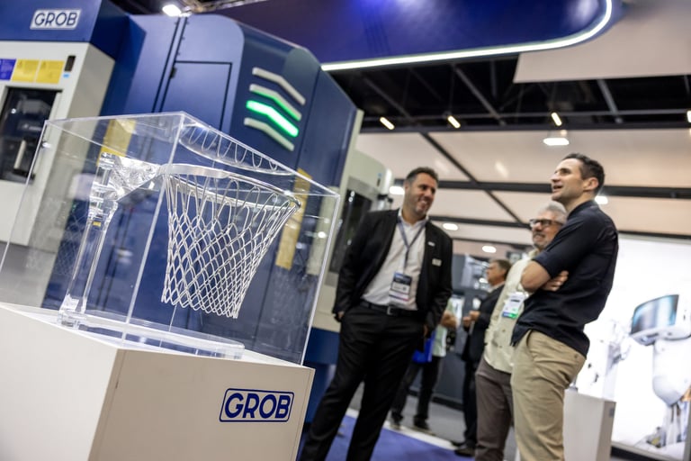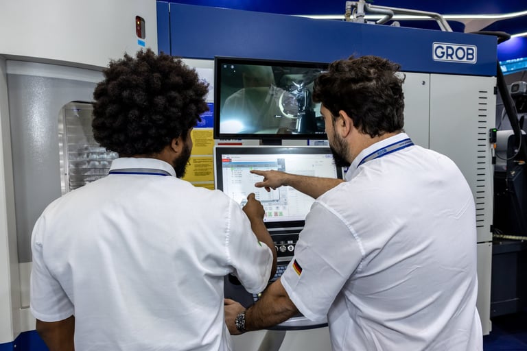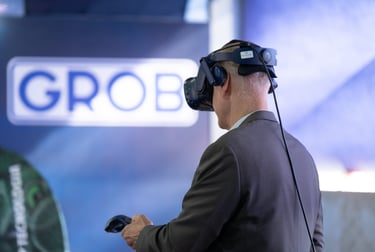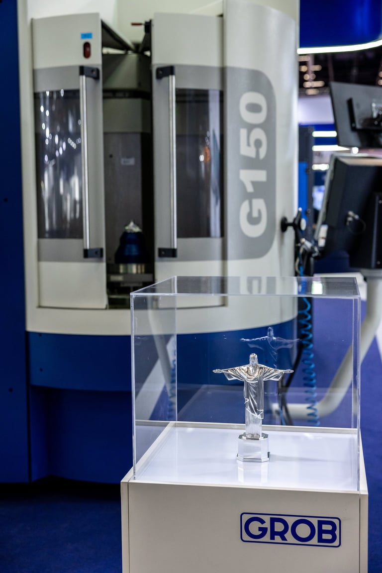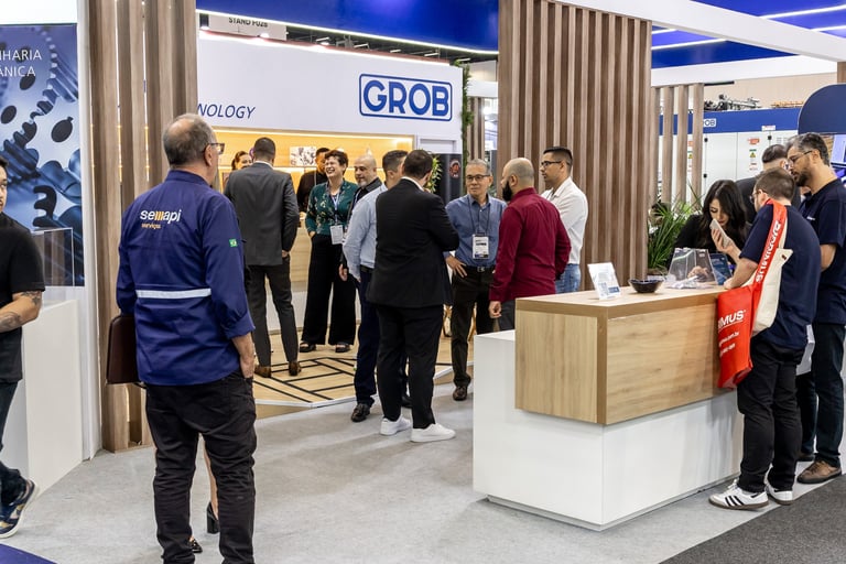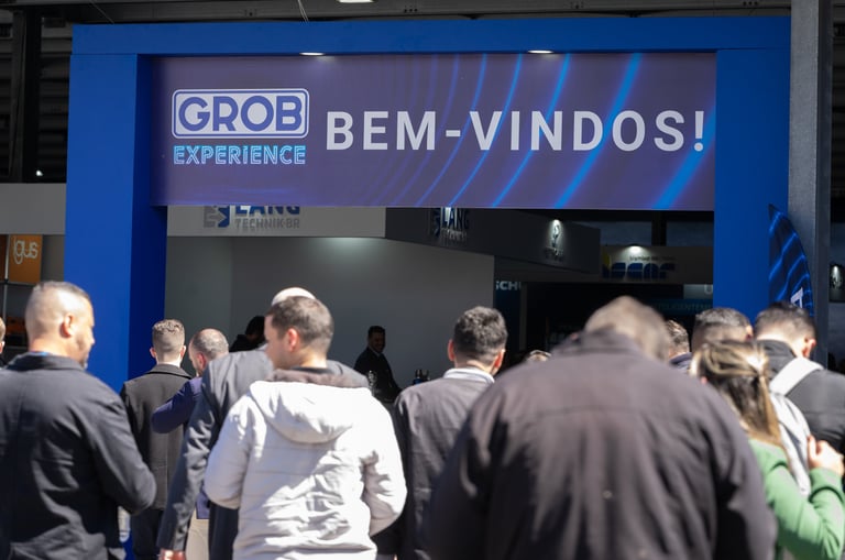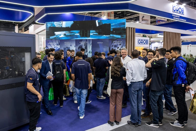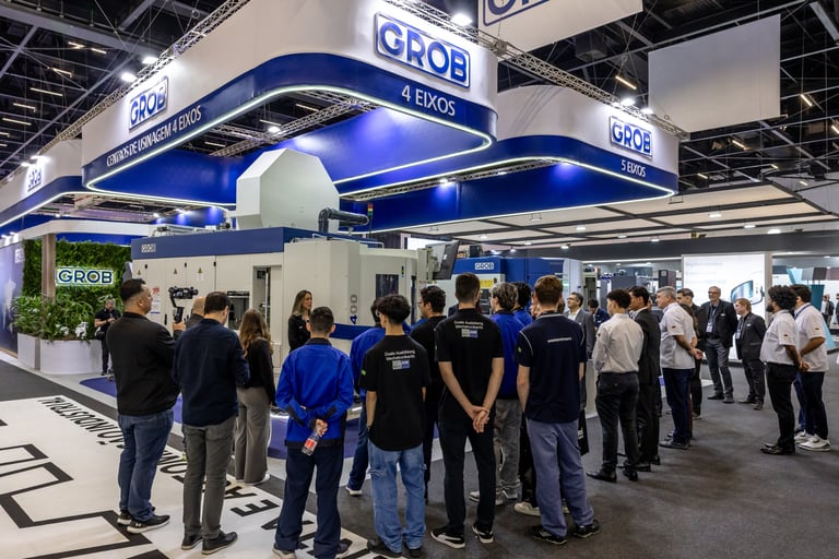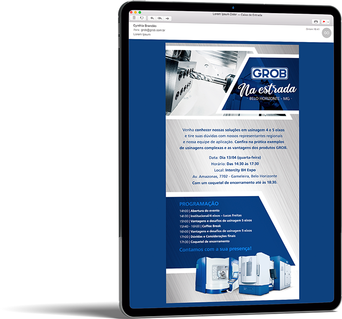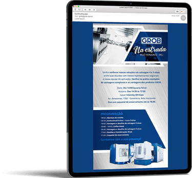 Realizamos uma ação de live marketing para um evento híbrido que conectou, via streaming, nossa planta de São Bernardo do Campo (SBC) com um público-alvo em Minas Gerais. Com 100 convidados e três apresentadores, o evento apresentou a usinagem ao vivo de peças nos centros de usinagem universais GROB, proporcionando interação em tempo real entre os participantes nas duas localidades. O objetivo foi criar um ponto de encontro entre nossa equipe comercial e potenciais clientes, oferecendo uma experiência dinâmica e interativa que destacasse a qualidade e a inovação dos nossos equipamentos diretamente na fábrica.